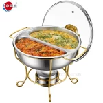 - Doppeltopf-Design: Diese Catering Chafing Dish ist mit zwei Töpfen ausgestattet, so dass Sie mehrere Speisen gleichzeitig anbieten können, um den Bedürfnissen von Gästen mit unterschiedlichen Geschmäckern gerecht zu werden.